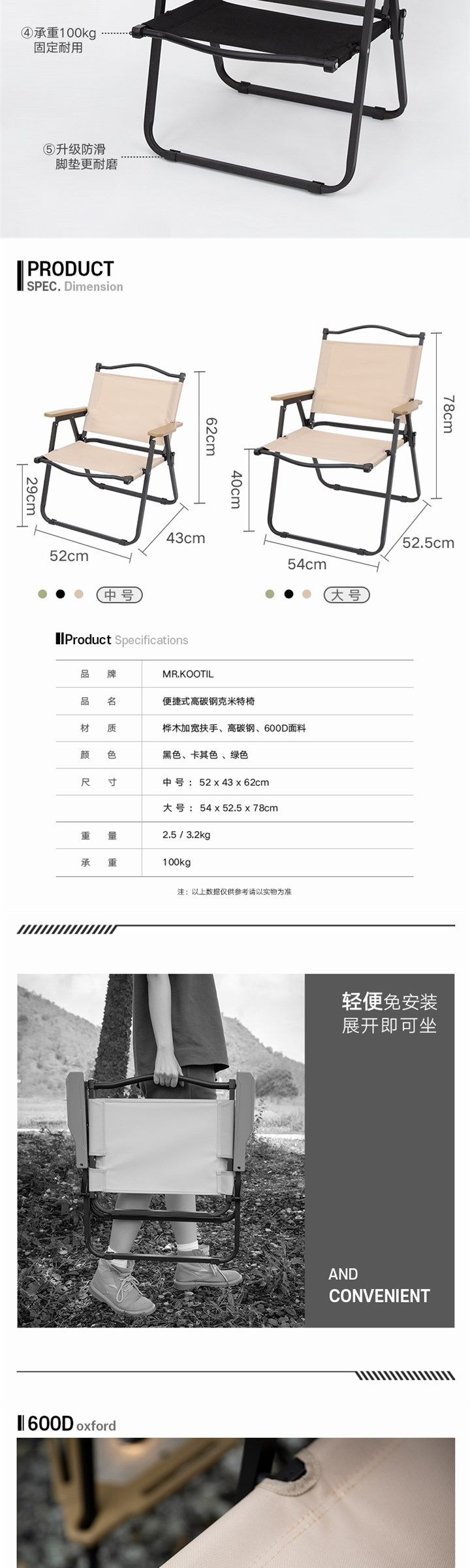 铁制折叠野营椅矮背
